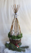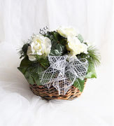 Weihnachtsgesteck im Weidenkorb silber-creme