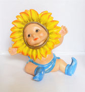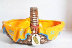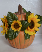 Füllhorn aus Keramik grün-gold mit Herbstdeko