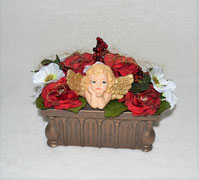 Weihnachtsgesteck mit Engelskopf rot-weiß